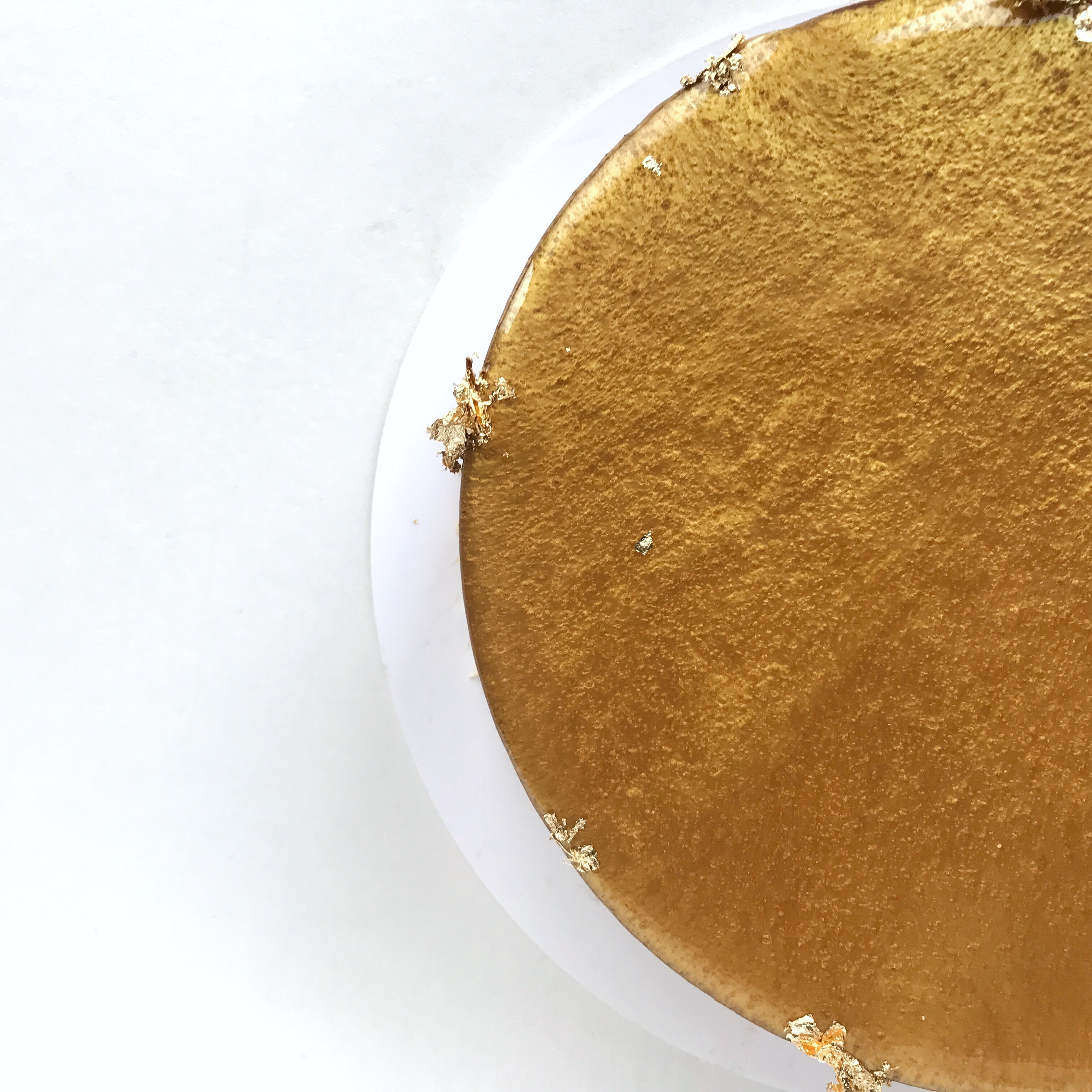 獨特的金屬色澤,呈現出一種流動而充滿藝術感的視覺效果。表面採用光滑的金色鏡面釉,在光線下閃耀著細膩的微光,如同融化的黃金般華麗。